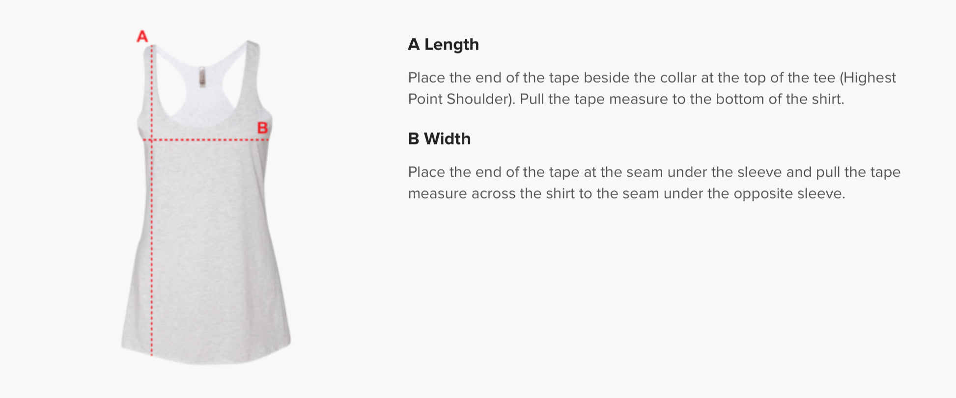 Measurement is based on flat measurement of one side of shirt. The shirt is stretchy and has an approximate give of 2 inches (5cm). Please refer to the sizing guide image located in the tank color options.